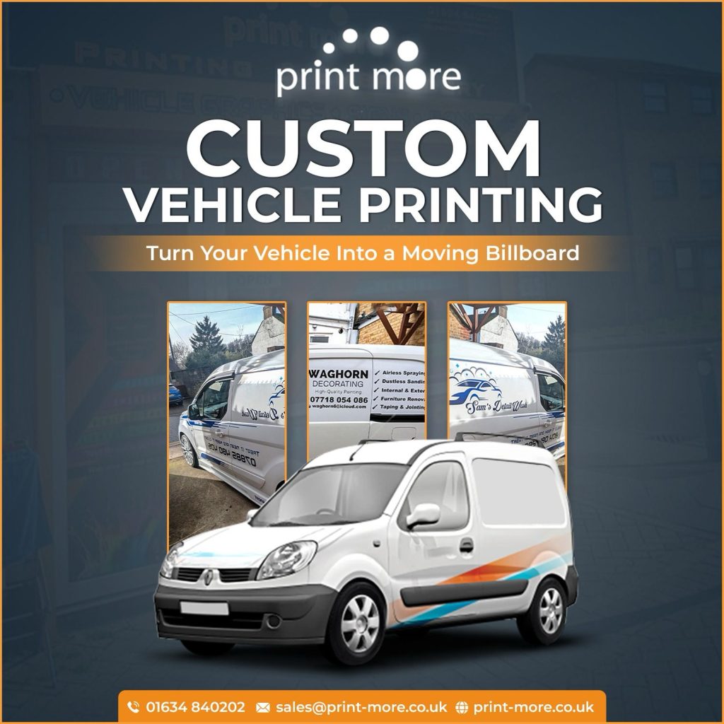 At Print More, we specialize in providing high-quality vehicle printing services in Chatham, UK, designed to make your business stand out on the road. Whether you’re looking to advertise your brand or add a personal touch to your vehicle, our custom printing services ensure a professional and eye-catching finish.